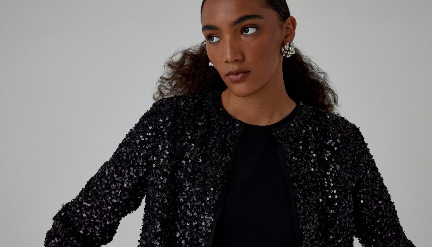 Inspiriert von der besonderen Magie der Feiertage, verschmilzt die Linie luxuriöse Stoffe mit funkelnden Details und raffinierten Schnitten, um Outfits zu schaffen, die bei jedem Anlass strahlen und begeistern.