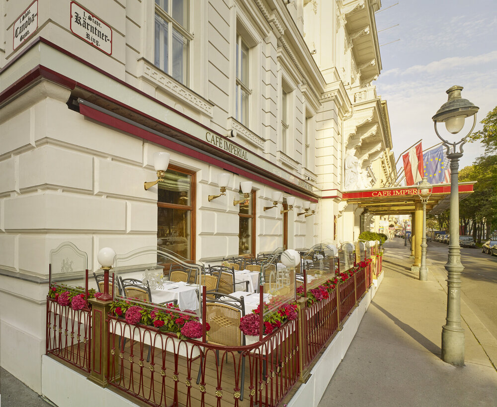 Das Hotel Imperial in Wien vereint luxuriöse Tradition mit einer der begehrtesten Sommerterrassen der Stadt. Direkt neben der berühmten Ringstraße und in der Nähe des Opernhauses gelegen, bietet die Terrasse einen einzigartigen Rückzugsort mitten im pulsierenden Herzen Wiens. Draußen sitzen und den Charme dieser historischen Lage genießen – das ist ein Erlebnis, das den Besuch im Hotel Imperial unvergesslich macht.