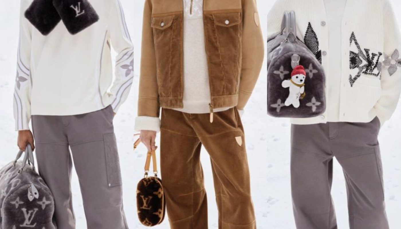 Abgerundet wird die Kollektion durch eine Reihe funktionaler Taschen, die die Handwerkskunst des Hauses zelebrieren. Modelle aus Trompe-l’Œil-Nylon in Denim-Optik oder metallisch glänzendem PVC in Gunmetal erinnern an schimmernde Schneelandschaften. Ein besonderes Statement setzt die Speedy P9 aus grauem Shearling mit großflächigem Intarsien-Monogram – Sinnbild für die Verschmelzung von Luxus und technischer Raffinesse.